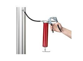 - Die Konstruktion ermöglicht die Schmierung mit nur einer Hand, dies erleichtert die Arbeit bei schwer zugänglichen Schmierstellen