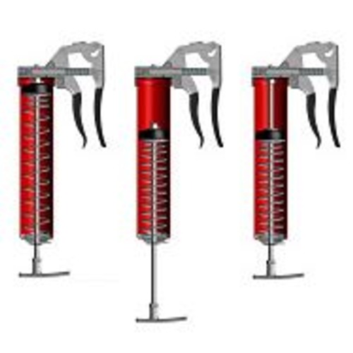 - Schubstange in jeder Position arretierbar - Schubstange muss nicht komplett nach hinten gezogen werden um das Fett vom Druck der Feder freizustellen (Fett verseift nicht)