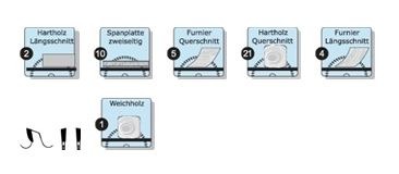 - für Plattenwerkstoffe edelfurniert oder ei9nseitig kunststoffbeschichtet sowie für oberflächenvergütete Werkstoffe bei hoher Schnittgüte