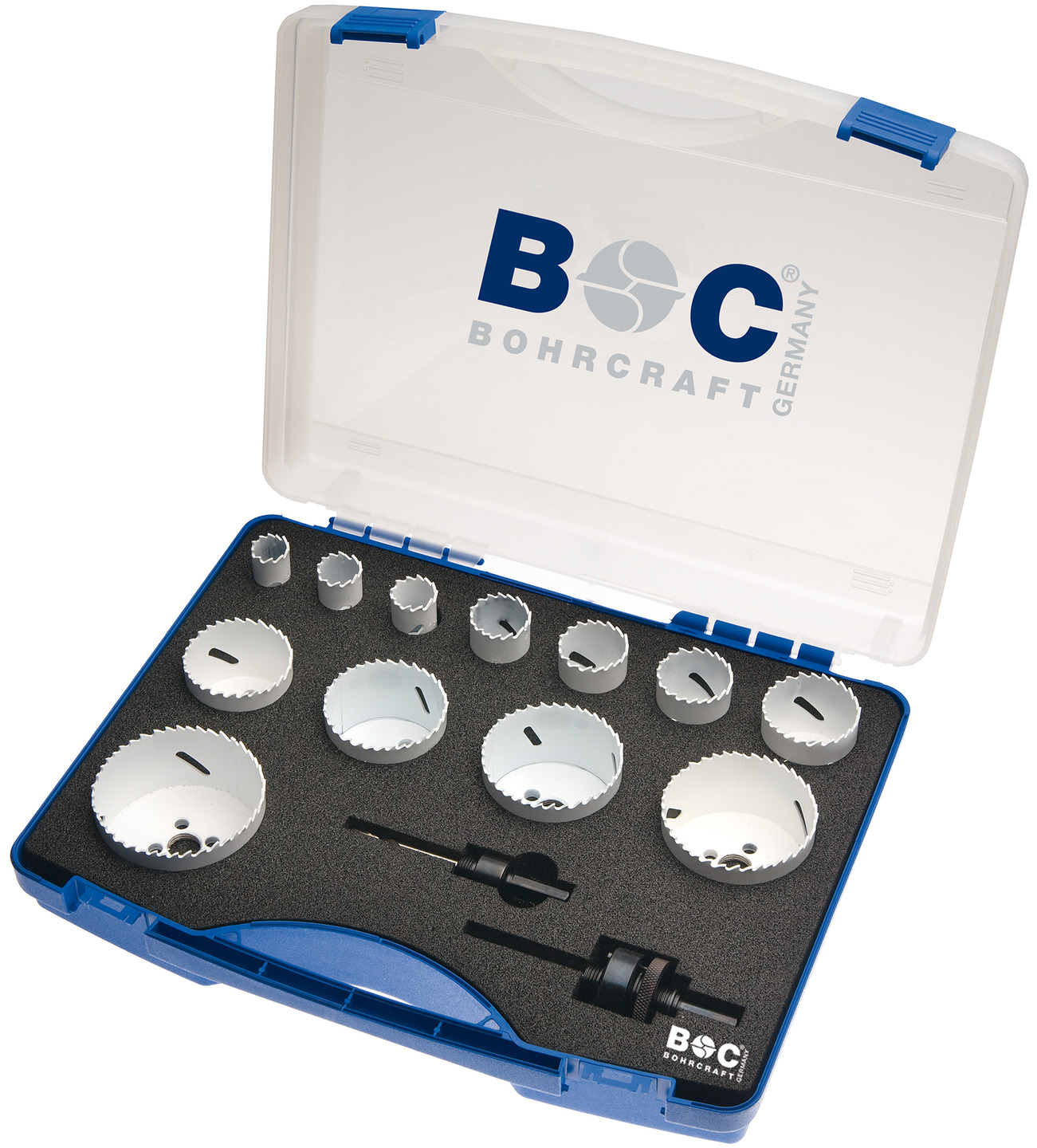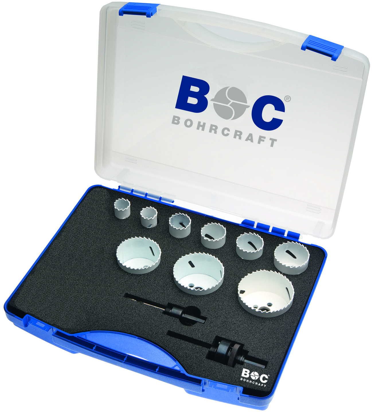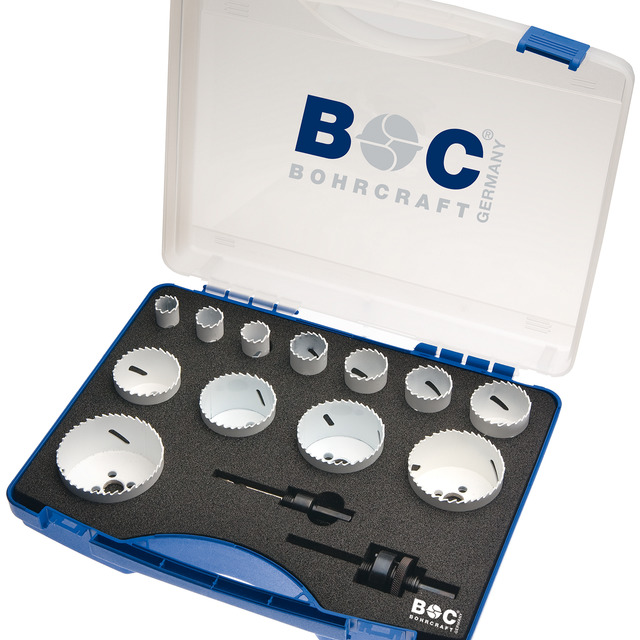 14-teilig, Inhalt: 19/22/29/35/38/44/51/57/64/68/76/ mm Lochsägen, 2 Aufnahmen