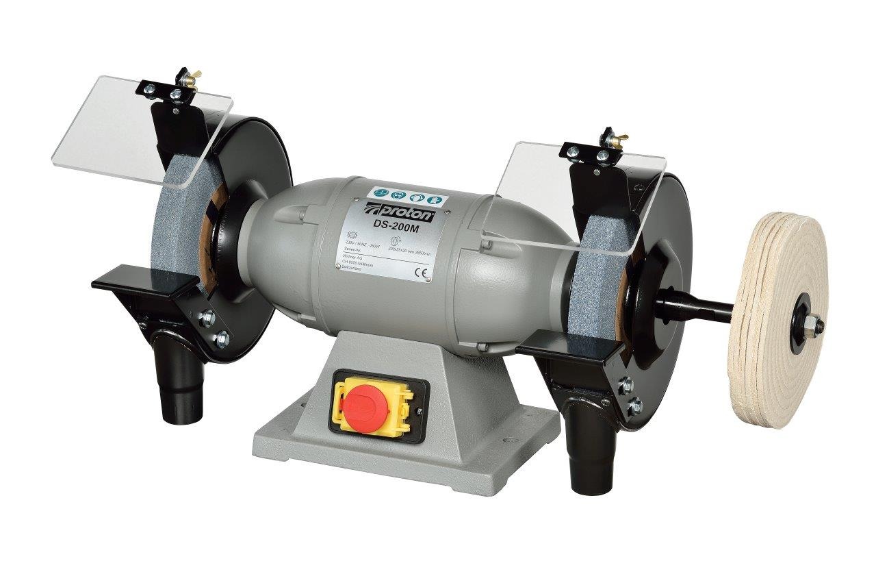 PROTON Doppelschleifmaschine: Hohe Präzision, Laufruhig, Wellenverlängerung, Schwabbelscheibe, Notausschalter
