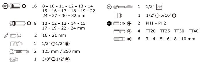 TOMAC Steckschlüsselkoffer 1/2 Zoll Antrieb